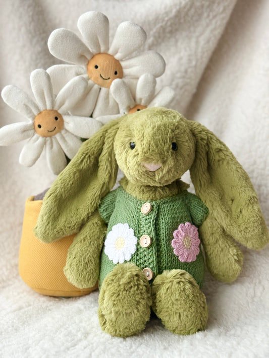 Daisy Cardigan Sweater | Handmade Knit Outfit for Jellycat Bashful Bunny