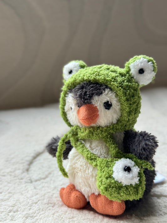 Frog Crochet Outfit for Jellycat Penguin – Adorable Animal Hat