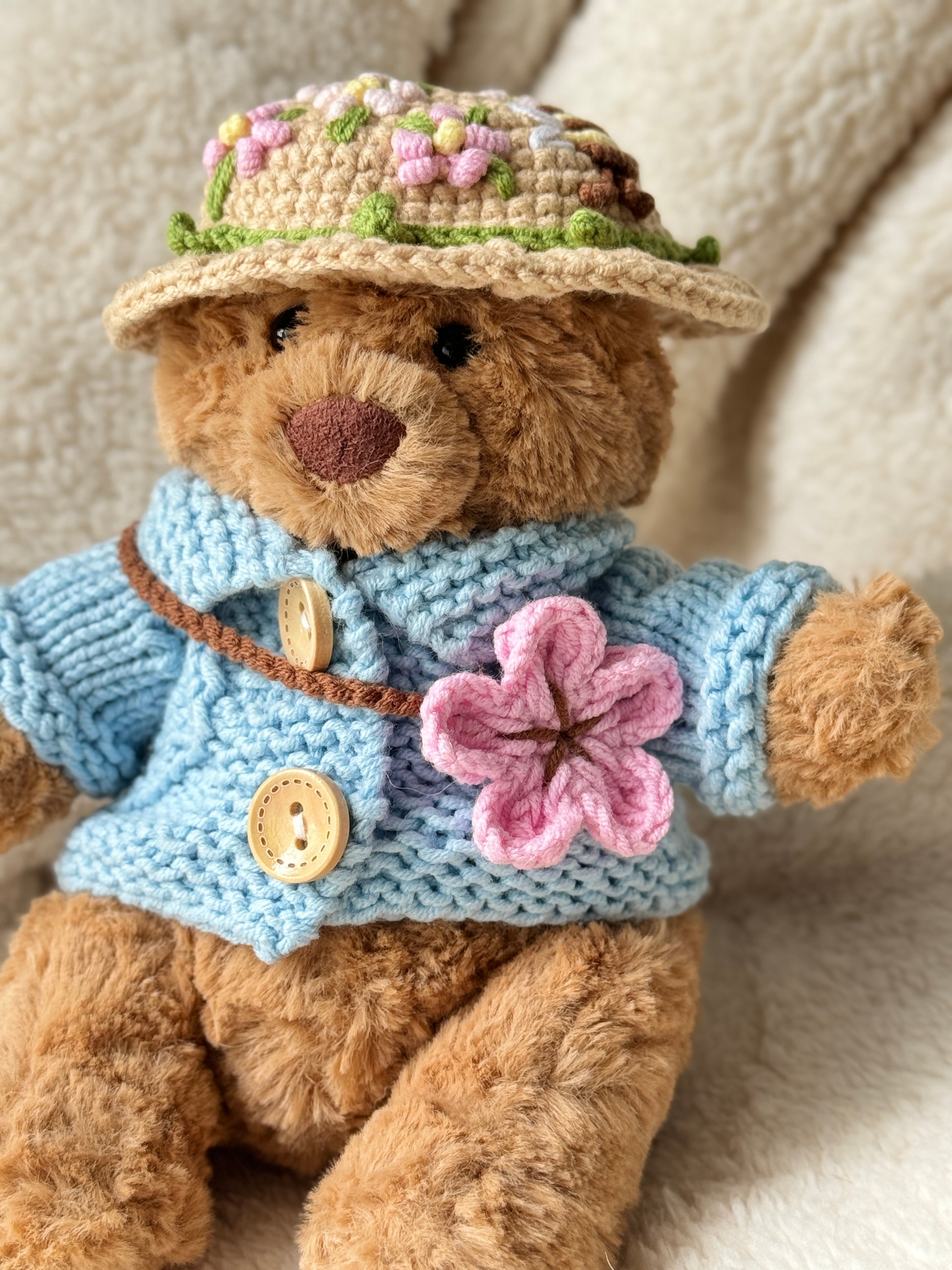 Spring Blossom Crochet Outfit Set for Jellycat Bart Bear – Hat & Floral Accessory