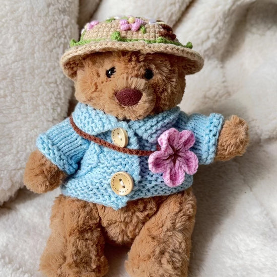 Transform your Jellycat plush into the perfect spring companion with this handmade Spring Blossom Crochet Outfit Set! 🌸 Designed to fit popular Jellycat plush toys like Bartholomew Bear, this set includes: